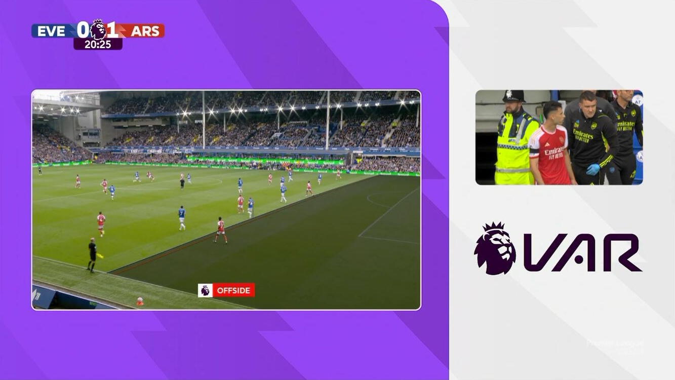 9月17日讯 英超第5轮,阿森纳客场对阵埃弗顿,法比奥-维埃拉直塞,马丁内利破门,但裁判判罚此前接球的恩凯提亚越位,马丁内利进球无效,比分仍为阿森纳0-0埃弗顿。