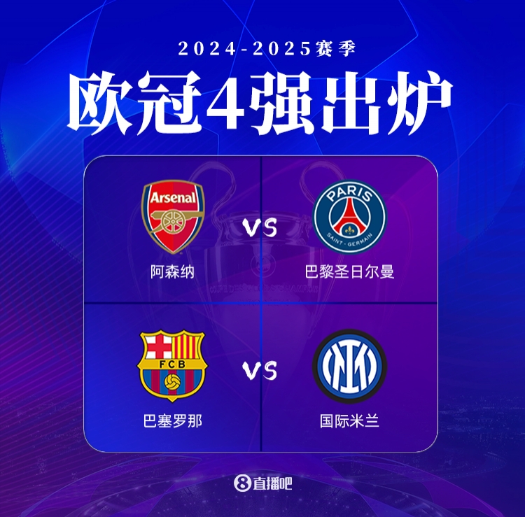 04月17日讯 2024-25赛季欧冠四强出炉,巴萨、巴黎、阿森纳、国米挺进四强,将为新的欧冠奖杯而战。