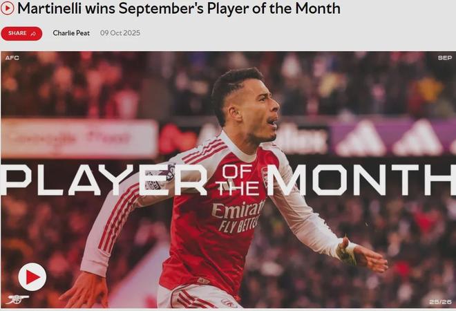 官方:马丁内利被球迷票选为了队内9月份最佳球员,巴西人得到了54%的支持。马丁内利9月份在对毕尔巴鄂竞技的欧冠比赛中替补登场贡献1球1助攻,几天后,这名前锋又在对曼城的比赛中替补登场打进绝平进球。不仅如此,马丁内利参与了阿森纳9月份的所有比赛,他在对纽卡斯尔和诺丁汉森林的比赛中也有替补登场,并且首发出战了对韦尔港的卡拉宝杯比赛。这是马丁内利第五次拿到阿森纳队内月度最佳球员奖,但是2022年1月以来第一次。本来我认为4个候选人里最先排除特罗萨德,因为同是替补出场较多,小马丁上个月直接贡献更多。祖比门迪是英超9月份最佳球员候选,加布也有绝杀这样的表现,我个人本来倾向于加布,但看来大部分枪迷还是更认可小马丁,我觉得这也挺好!而且毕竟马丁在欧冠和曼城比赛中的表现可是直接给阿森纳带来了分数!谁能想到,夏天还在讨论被清洗的小马丁,拿到了9月份最佳球员奖,所以这就是足球,这就是我为什么一直不喜欢说“XXX废了”,不要看轻任何人的努力,比如现在低谷期的厄德高,希望他和小马丁继续加油!2022年1月以来第一次队内月度最佳,可见这3年来小马丁其实成长并不顺利,但他依然还年轻,希望这个赛季和特罗萨德撑起左边路!萨卡在英格兰对威尔士的友谊赛中打进了球队的第三球。非常精彩的进球,右路内切,左脚爆杆,这才是我们想看到的萨卡射门!数据统计,萨卡目前以13粒进球成为了阿森纳代表英格兰队进球最多的球员,超越了克利夫-巴斯廷保持的12球纪录(1931-1938年期间)。此役萨卡和赖斯均首发登场,两人都在第68分钟被替补换下;斯凯利在第80分钟替补登场。埃泽作为替补没有登场。三个进球可以说都和阿森纳有关,第一球是赖斯开出的角球,第二球萨卡和赖斯轮番传中制造了门前险情,第三球萨卡亲自杀死比赛。友谊赛而已,图赫尔换了不少人,但萨卡和赖斯还是首发,好在换下的较早……巴斯廷的阿森纳球员英格兰国家队进球纪录都快100年了,可以说萨卡就是现代史上阿森纳在英格兰的第一人,而且他还这么年轻,肯定能继续刷新纪录的!12球的国家队进球纪录确实有点拿不出手,希望萨卡刷新一下高度!利物浦中卫科纳特和阿森纳中卫萨利巴在国家队集训为球迷签名时谈到了本赛季的争冠问题,两人互相毒奶。科纳特:“嗨,萨利巴!是你了,今年(冠军)是你们了!”萨利巴反弹:“不不不,今年还是你的!还是利物浦的……必须把压力留给他们!”哈哈,感觉球员和球迷们其实有时候也差不多,也是来回毒奶,来回攒人品……但话说萨利巴还是清醒的,一无所获之前保持谦逊是其一,把争冠压力留给对手是其二,其实天天把争冠挂在嘴边不是好事。现在外界似乎认定了阿森纳是本赛季英超冠军的最大热门,希望球员们能实现这点吧!玩笑也有三分真,我相信其他英超对手都知道阿森纳现在实力或许就是最强的,面对阿森纳时他们更多的是畏惧而不是自信!邮报阿森纳方面记者IK在问答专栏中谈到了枪迷关心的一些问题。关于一月份的计划:由于今夏已经豪砸2.5亿英镑引进了8名球员,因此预计阿森纳在买人方面将经历一个安静的冬窗,不过离队方面倒是可能有动作。目前来看,阿森纳对一月份评估热苏斯的报价持开放态度,这名前锋的合同2027年到期,并且巴西人预计将在新年前后恢复健康。关于哲凯赖什的使用:接近阿森纳的消息源指出,在之前几个赛季,对方的防守球员经常双人包夹萨卡,但现在,由于哲凯赖什的存在,他的力量和纵向拉扯跑位带走防守球员的能力意味着瑞典人现在反而经常是那个陷入双人包夹的前锋,而这给球队整体带来了更大的帮助。不过IK同时指出,如果不是哈弗茨受伤,他才是本赛季初期扮演阿森纳9号位的主力,而不是哲凯赖什,因为后者被认为需要时间来适应新联赛、新体系和新环境。关于萨卡的续约:阿森纳和萨卡的续约谈判即将达成协议,俱乐部方面非常有信心萨卡会签下新合同,一切只是什么时候签字的问题,而不是会不会的问题。一月份确实买人的可能性不大了,2.5亿英镑啊同志们,我都担心影响明年的引援……再说了,还能买谁啊?买来放在哪啊……现在来看给阵容瘦身可能是必须的,外租的那几个不说,热苏斯早晚要走的,一月份有没有买家还不一定,因为毕竟届时他才刚复出,而且热苏斯的工资可是不低的,也就英超和中东球队有能力接盘……哲凯赖什的话,说实话显然来到英超之后他的进球率大跌,并且表现不算特别惊艳,但我依然认为哲凯赖什的整体发挥是不错的,他才刚来,而且整个夏天没有团队训练,也没有怎么参加季前赛,耐心点吧。如果萨卡上场比赛不抢点球,哲凯的数据或许能更好看……正如文章所说,哲凯带给全队的作用很大,不仅体现在进球上,而且如果不是哈弗茨受伤,本来他应该慢慢融入才对,而不是上来就首发,直接上强度……萨卡的续约就不说了,等官宣就是。