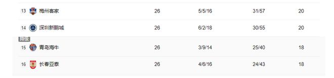 中超最后4轮赛程分析,亚泰、海牛18分,新鹏城20分,谁将降级