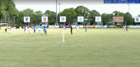 上半场第18分钟,上海申花右侧开出角球,王博涵禁区中路头球冲顶,完成破门,2:1!申花再度取得领先。5分钟之后,陈伟杰在争抢头球时被对手故意撞倒,缔造者队这次恶意犯规一度让比赛终断,差点酿成大规模冲突,缔造者队的达明琼被红牌罚下。上海申花多打一人。第26分钟,陈伟杰禁区内肘击对手,被主裁判出示第二张黄牌染红离场,场上形成10打10的局面。半场补时第1分钟,梁珈豪单刀突入禁区之后面对出击的门将挑射破门,3:1!上海申花扩大比分。半场结束,上海申花带着3:1的比分进入更衣室。