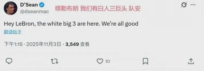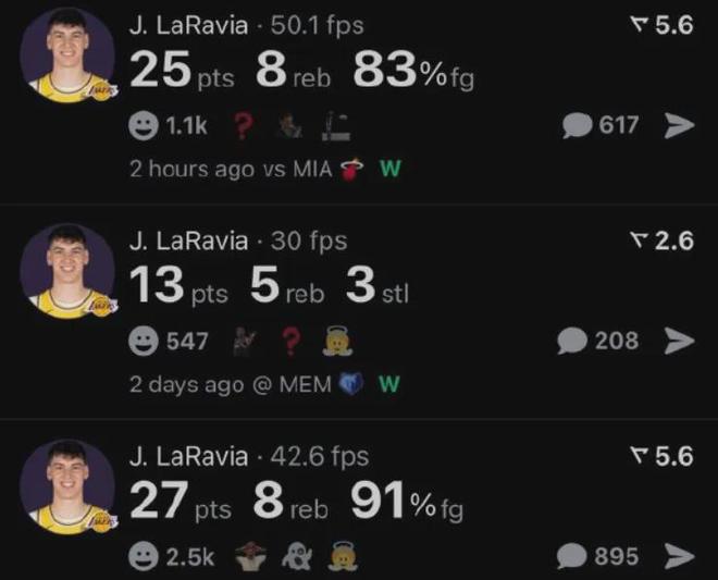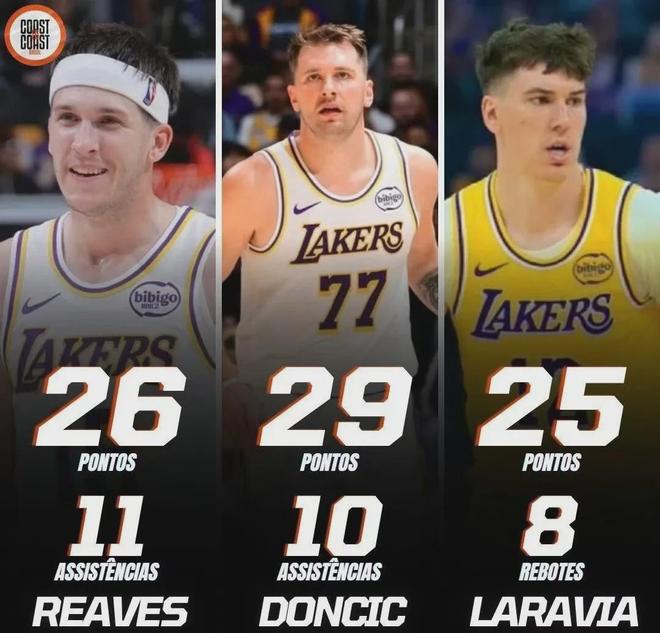 东契奇贡献29分11板10助三双,里夫斯26分11助两双到手,拉拉维亚25分进账,合计80分。三个白人球员,撑起了湖人的现在,目前紫金军团以5胜2负高居西部第三。湖人全队数据如下:热火全队数据如下:拉拉维亚在湖人三连胜期间,分别轰下27分8板2助1断、13分5板2助3断,以及25分8板3助4断,场均数据为21.7分7板2.3助2.7断,两项命中率78.1%和66.7%,真实命中率高达87.2%。这哥们出生于2001年11月3日,刚好24岁,身高2米01的侧翼,22届首轮19号秀,今夏休赛期以两年1200万美元签约湖人,本来他的加盟并不被看好,现在则令无数人直呼真香。人不可貌相,别看拉拉维亚细皮嫩肉的,又定位是射手,可发起狠来也能上演惊天隔扣,热火2米13的首发中锋克莱尔-韦尔成为了他的背景板。湖人今夏最佳签约是拉拉维亚?目前来看,是的,艾顿和斯玛特都得往后稍稍。随着拉拉维亚的爆发,又有人开始内涵起詹姆斯,挑一个不是很过分的言论,如下:目前为止,詹姆斯由于坐骨神经痛尚未打过一场比赛,本赛季为他的合同年,薪资高达5263万美元,湖人暂时没有与其续约的计划。有一说一,当前化学反应良好的湖人,还有詹姆斯的位置吗?当管理层发现没有他球队照样可以高歌猛进,自然更不可能为这位即将年满41岁的超巨提供续约合同。至于太子爷布朗尼的未来命运......他刚完成了个人NBA生涯首次空接暴扣,点燃全场引爆网络,尽管定睛一看对阵热火比赛全场下来只得到2分但同时收获到2次助攻3次抢断。