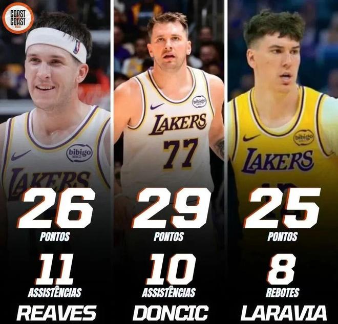 东契奇贡献29分11板10助三双,里夫斯26分11助两双到手,拉拉维亚25分进账,合计80分。三个白人球员,撑起了湖人的现在,目前紫金军团以5胜2负高居西部第三。湖人全队数据如下:热火全队数据如下:拉拉维亚在湖人三连胜期间,分别轰下27分8板2助1断、13分5板2助3断,以及25分8板3助4断,场均数据为21.7分7板2.3助2.7断,两项命中率78.1%和66.7%,真实命中率高达87.2%。这哥们出生于2001年11月3日,刚好24岁,身高2米01的侧翼,22届首轮19号秀,今夏休赛期以两年1200万美元签约湖人,本来他的加盟并不被看好,现在则令无数人直呼真香。人不可貌相,别看拉拉维亚细皮嫩肉的,又定位是射手,可发起狠来也能上演惊天隔扣,热火2米13的首发中锋克莱尔-韦尔成为了他的背景板。湖人今夏最佳签约是拉拉维亚?目前来看,是的,艾顿和斯玛特都得往后稍稍。随着拉拉维亚的爆发,又有人开始内涵起詹姆斯,挑一个不是很过分的言论,如下:目前为止,詹姆斯由于坐骨神经痛尚未打过一场比赛,本赛季为他的合同年,薪资高达5263万美元,湖人暂时没有与其续约的计划。有一说一,当前化学反应良好的湖人,还有詹姆斯的位置吗?当管理层发现没有他球队照样可以高歌猛进,自然更不可能为这位即将年满41岁的超巨提供续约合同。至于太子爷布朗尼的未来命运......他刚完成了个人NBA生涯首次空接暴扣,点燃全场引爆网络,尽管定睛一看对阵热火比赛全场下来只得到2分但同时收获到2次助攻3次抢断。明天上午11点开拓者VS湖人,杨瀚森已经被召回,给大家找到一个干净又能白嫖的直播信号源,关注以下公众号“杨老爱侃球”,并在后台回复“888”即可获取。
