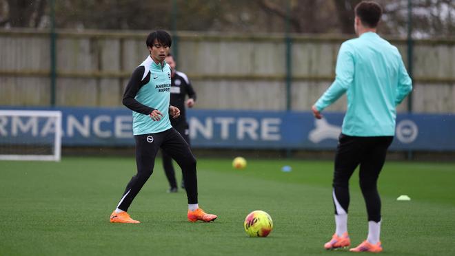 伤愈回归,三笘薰重返球场进行单独训练