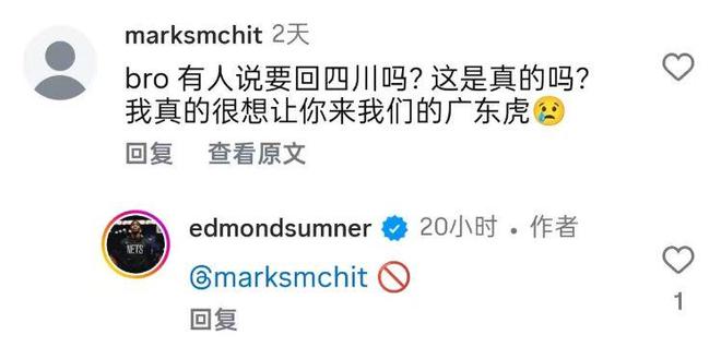 之前萨姆纳曾在社媒自宣加盟广东,但随后他却删除了相关动态,就当广东球迷开始讨论萨姆纳加盟是否会出现差池时,近期萨姆纳接连点赞社媒广东球迷的留言,这也基本上意味着他加盟广东,应该是板上钉钉的事情。
