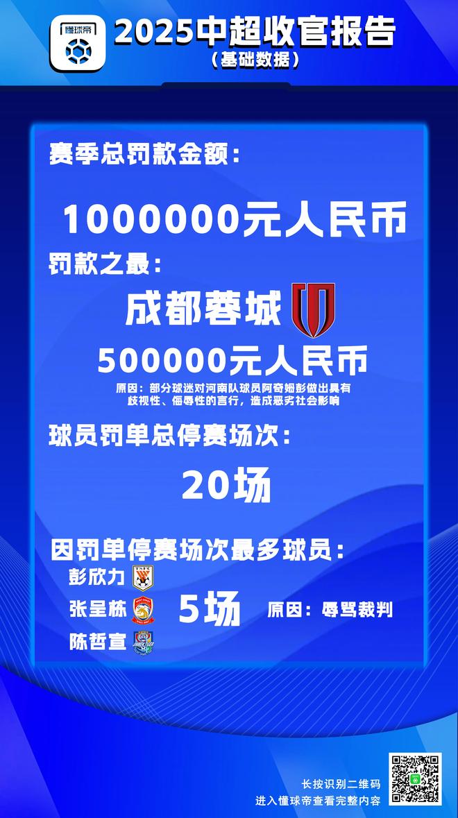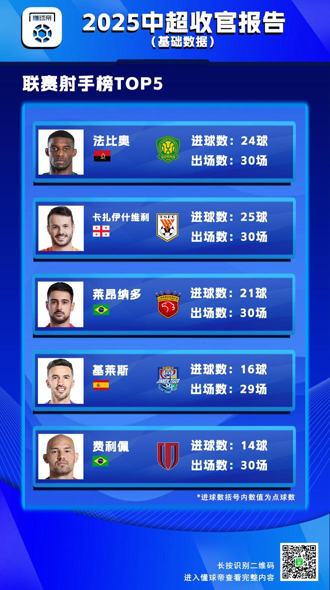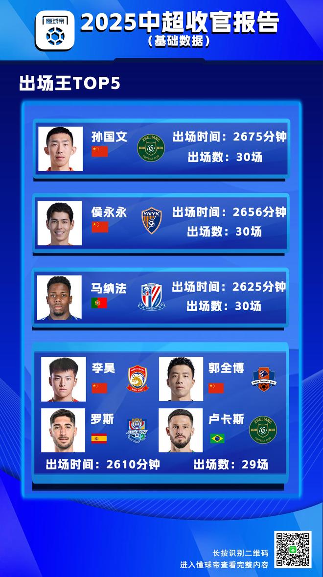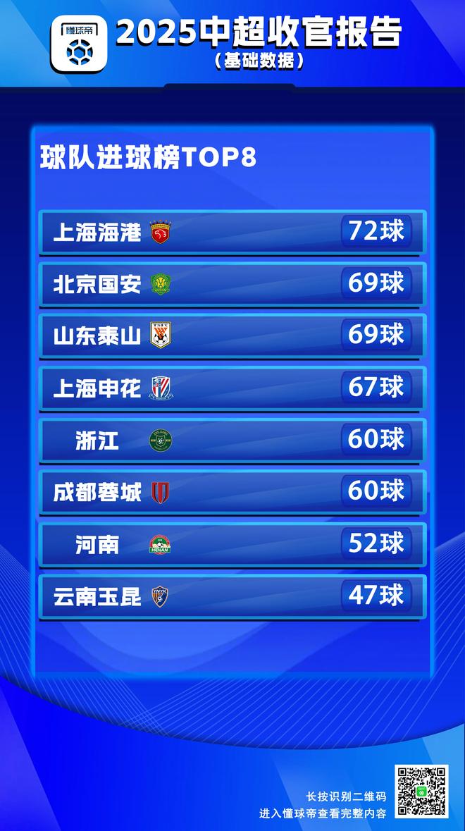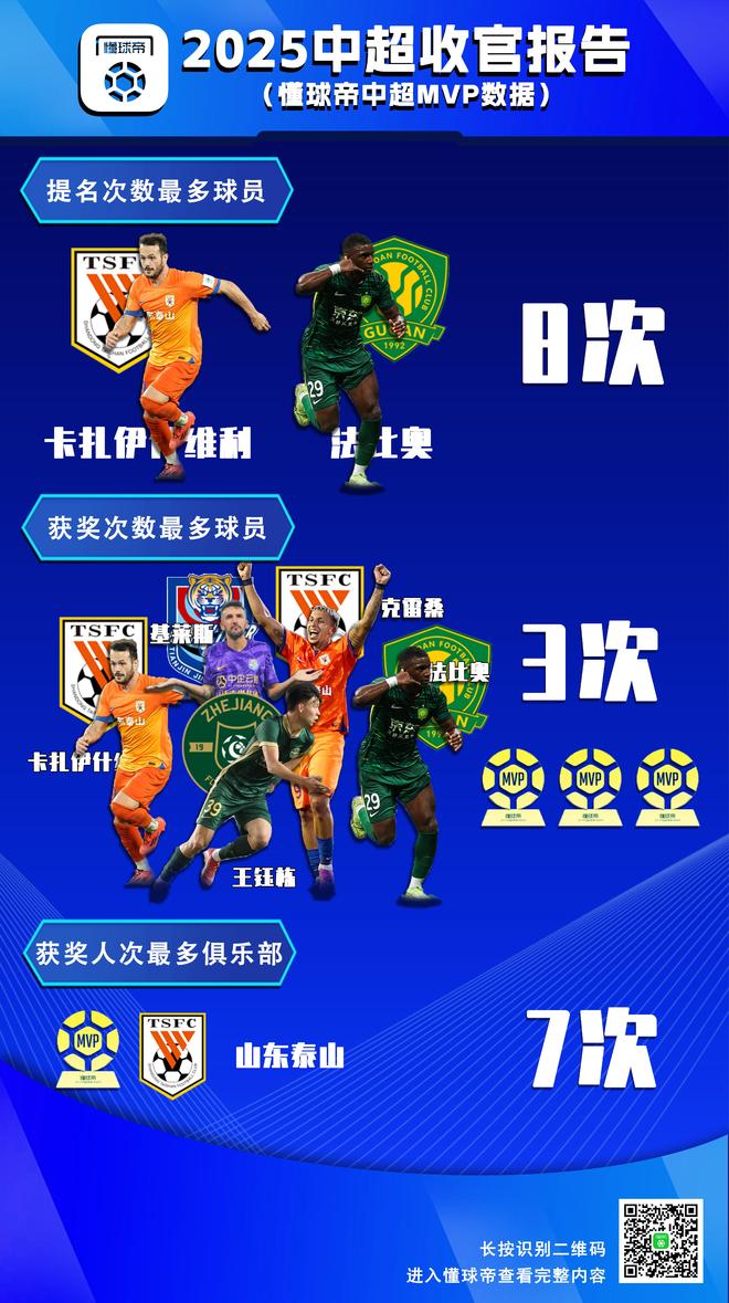 2025赛季中超联赛已经落下帷幕,一年一度的《懂球帝中超收官报告》正式跟大家见面啦。今年,我们将从懂球帝影响力数据、赛事基础数据以及中超MVP相关数据三个方面,来为您呈现这一整个赛季中超的盛况。Part1——影响力数据2025赛季是一个充满话题的赛季,联赛争冠、金靴争夺、保级大战、年轻球员涌现、球迷争端……在这一个赛季的时间里,共有接近3.5万篇中超相关内容在懂球帝上线,其中新闻内容占据1.8万篇,超过所有中超内容的50%,我们一如既往地为大家呈现了来自懂球帝以及各方的消息。而在这一个赛季的时间里,我懂球迷为中超联赛贡献了超过450万条评论。在我懂的评论区总是能够见到有趣的梗和梗图、颇有深度的见解以及充满温情的故事。信息是需要传播的,在这一个中超赛季里,懂球帝站内的中超内容共得到了超过190万次的分享。每一位分享内容的球迷都是信息的传播者,感谢我懂球迷能够将内容分享出去,让更多人能够了解到联赛中发生的种种,以及产生的各种消息。赛季最受关注新闻——布彭扎去世一个赛季,总会有一些让人能够牢牢记住的事情。有的是好的、快乐的,有的则是悲伤的。在本赛季中超联赛中,最受人关注的新闻是浙江队外援布彭扎去世的新闻。现在我们还记得当时的那个下午,懂球帝编辑部在看到外媒的相关报道时的那种错愕。对于这样的内容,我们处理的原则一定是慎之又慎,在相关消息曝出后,有的同事在监控信息,有的则是在求证不同信源,为的是尽可能准确地报道出相关信息,同时也尊重逝者,不希望他和爱他的人们受到失实信息的打扰。赛季最受关注比赛——山东泰山6-0北京国安在一个赛季的所有比赛中,总有一两场比赛会成为球迷们的共同记忆。本赛季中超联赛中,京鲁的两回合大战一定如此。在北京国安和山东泰山的首回合比赛中,北京国安主场6-1战胜了自己的老对手山东泰山。这个比分在当时便已经掀起轩然大波。然而,谁都没有想到的是,回到主场的山东泰山回敬了北京国安一个6-0。如此戏剧性的“复仇”戏码,也让这场比赛成为了本赛季最受关注的比赛。而两回合的京鲁大战也占据了本赛季最受关注比赛的前两名。此外,北京国安痛失好局被三镇扳平、何超世界波绝杀成都以及山东泰山逆转梅州这三场比赛,也跻身赛季最受关注的比赛TOP5。赛季最受关注球队——北京国安北京国安这支首都球队本赛季也从未缺少过话题,球队与世界名帅塞蒂恩的爱恨情仇、球队起起伏伏的表现、球员与球迷的故事等等,都让国安成为了这个赛季最受关注的球队。然而,实际上北京国安本赛季最受关注的新闻并非发生在一线队当中,而是发生在梯队。在北京全运队赴海外集训拉练期间,国安小将郭嘉璇在一次意外中头部严重受伤,陷入脑死亡状态,最终不幸去世,年仅18岁。在这次事件中,懂球帝始终持续跟进报道,希望能够履行我们作为媒体的社会责任,为各界还原、厘清整个事情的经过,解开事件中的种种疑点。并且也希望能够尽微薄之力帮助到这个遭遇不幸的家庭。赛季最受关注球员——王钰栋如果让各位从本赛季中超的所有球员中选出一个你认为最受关注的球员,王钰栋一定会是一个最普遍的答案。事实也确实如此,在过去的一个赛季中,王钰栋成为了最受关注的中超球员。本赛季,王钰栋实现爆发,打出了状态极佳的一个赛季。其现象级的表现加上各级国字号的加持,让王钰栋成为了如今最受关注的中超球员。而关于王钰栋的最受关注的新闻,是一则门兴球探对于王钰栋的表达。这也体现出了人们对于王钰栋外出留洋的期待与渴望。Part2——赛事基础数据冠军——上海海港金靴——法比奥联赛射手榜球队进、丢球榜联赛出场王TOP5关键传球榜TOP5抢断榜TOP5解围榜TOP5零封榜TOP5纪律相关数据赛季上座人数相关数据Part3——中超MVP数据,参与热度创历史新高本赛季30轮的懂球帝中超MVP评选中,共收到了约1425万人次的有效投票,这一数据相比于去年的1178万人次提升了近21%。其中,单轮投票人数最高的是第12轮,达到了828869人次,这一数据也是历年懂球帝中超MVP评选中,人数最高的一次。此外,本赛季单轮得票最多的球员是卡扎伊什维利,他在第24轮共收获了479672张票。在那一轮对阵上海申花的比赛中,瓦科凭借着自己的帽子戏法,战平了强敌上海申花,他也因此实现了连场戴帽的成就。得票率方面,王钰栋在第9轮的比赛中得到了79.4%的得票率。在那场比赛中,他打入了一记世界波,进球后,王钰栋眼含热泪与队友双手指天,悼念着刚刚离世的队友布彭扎。在本赛季懂球帝中超MVP候选提名方面,瓦科和法比奥这一对同年同月同日生的金靴争夺对手都得到了8次提名。而两人整个赛季也均3度摘得懂球帝中超MVP,分别收获了三座我懂奖杯。此外,除了瓦科和法比奥之外,还有基莱斯、王钰栋以及克雷桑本赛季都拿到了3座懂球帝中超MVP奖杯,这5位球员也包揽了本赛季一半的懂球帝中超MVP的奖项。同时,懂球帝在此想感谢每一位参与到懂球帝中超MVP评选活动中的评审老师们,感谢各位老师对于懂球帝中超MVP栏目的大力支持。本赛季,我们对懂球帝中超MVP栏目进行了一定的升级,并希望通过十余次对MVP得主的专访,来拉近球迷与球员及俱乐部之间的距离。感谢每一支俱乐部对我们的支持与帮助,最终让各种形式的颁奖与采访得以最终落地
