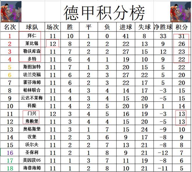 积分榜方面,莱比锡今天先赛无力赢球,未能再次取得领先,这样的话他们多赛一场落后拜仁5分,本轮过后大概率是要被拜仁扩大差距,另外他们净胜球比勒沃库森少,如果勒沃库森能在主场击败多特,那莱比锡第2的位置都保不住。门兴拿到1分后,暂时超过弗赖堡升至第11。