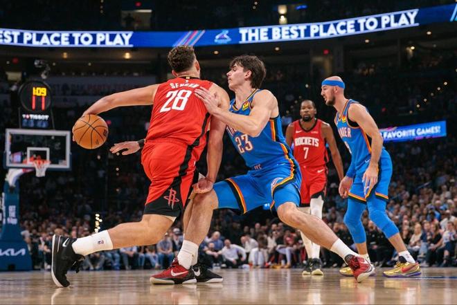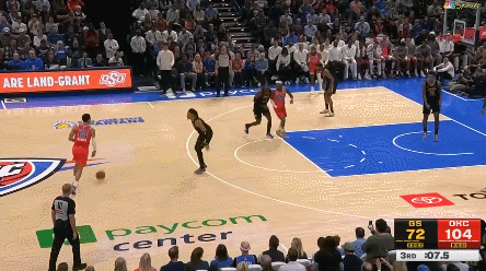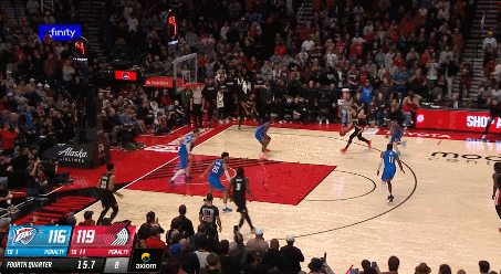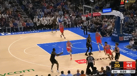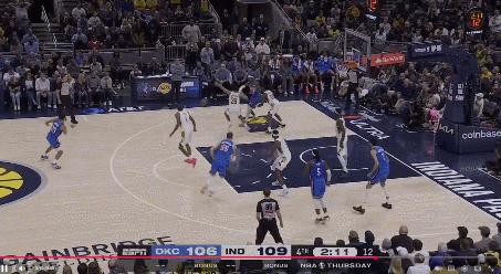 就像去年一整年一样,雷霆让对手在任何时间都无法放松警惕的防守,是他们获胜的根基。全队高强度的对抗施压和极致的换防默契,如同伊戈达拉一样的切球,老六一样的背后抢断,或是把对手诱导到设下陷阱的传球路线当中。而且他们拥有的还不只是一个两个这样的球员,而是一群这样的球员。这些贯穿一整场比赛的防守回合,让他们打出了NBA独一档的防守效率。