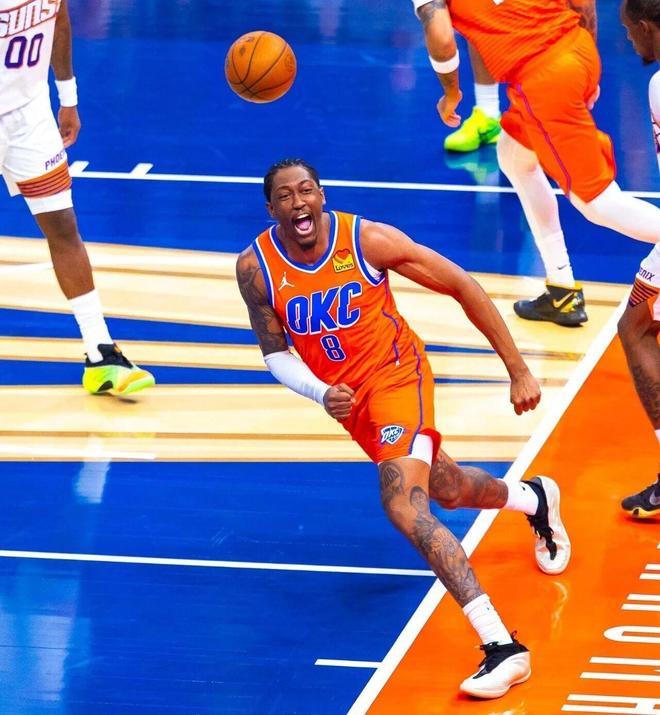 球队的大当家第四节躺平,二当家直接全场躺平。而杰伦-威廉姆斯缺阵19场比赛的结果是,雷霆练出了一个最佳第六人级别的持球手。场均15.2分3.5篮板3.7助攻1.6抢断的阿杰伊-米切尔,是雷霆全队第四节出场次数最多的球员,只有一场比赛因为受伤没打,也是雷霆第四节出场时间最多的球员。球队从几年前开始寻找的能够引领第二阵容的主控,从当不了绿叶的吉迪、适应不了高强度的米契奇到2年1冠0出场的托皮奇,如今这个角色被二轮秀米切尔牢牢占据。