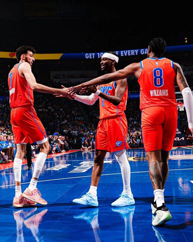 一方面,趁现在球队势头正盛,容错率非常高的情况下,可以有更多的时间来观察板凳末端的几人,或许下一个卡鲁索、多尔特、米切尔已在阵中呢?同时,雷霆已经尝试过250套不同的场上阵容,在西部前六的球队中和马刺并列是最多的。另一方面,雷霆理想化的状态是,等球队在赛季中段伤员回归,全员健康的他们拥有全联盟最好的阵容深度,在最富裕的状态下甚至可以排出一套相当强力的12人轮换阵容。即使是球队的9-12人,阿隆-维金斯、杰林-威廉姆斯、以赛亚-乔、肯里奇-威廉姆斯,放到不少其他球队里打个第7人第8人都绰绰有余。也就不太需要板凳末端的双向球员登场了。