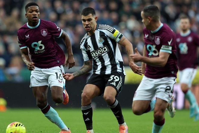 第35分钟,凯尔-沃克犯规,被出示黄牌。8分钟后,伯恩利再遭重大打击。卢卡斯-皮雷斯犯规,作为最后一名防守球员放倒埃兰加,被直接红牌罚下。伯恩利不得不少一人作战。半场补时阶段,纽卡斯尔联获得点球机会。戈登主罚,嗡稳稳罚进。半场结束,纽卡斯尔联2-0领先伯恩利。纽卡斯尔联上半场控球率58%,10次射门,5次射正,进了2球。而伯恩利上半场4次射门都没有射正。