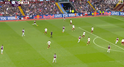 第42分钟,萨卡强突回传,本-怀特打门被没收
