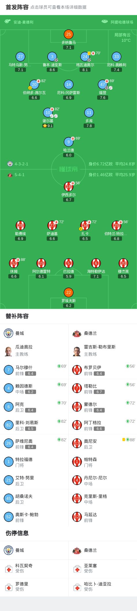 北京时间12月6日英超联赛 第15轮,曼城主场对阵桑德兰。上半场,鲁本-迪亚斯世界波破门,格瓦迪奥尔头球建功;下半场,谢尔基插花脚助攻福登头球破门锁定胜局。比赛尾声阶段,奥尼安凶狠放铲努内斯,主裁判观看VAR后出示红牌。最终曼城3-0桑德兰,积分榜落后阿森纳2分。关键事件