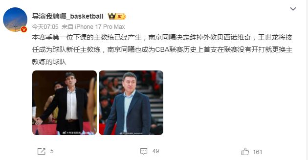 王世龙过去几个赛季担任浙江男篮的主教练,获得过年度最佳主教练奖,还率领浙江男篮历史首次晋级过CBA总决赛。不过在上赛季中段,王世龙悄然下课,今夏则是成为同曦的助教,因而他接替贝帅执教也并不令人意外。(文/醉卧浮生)